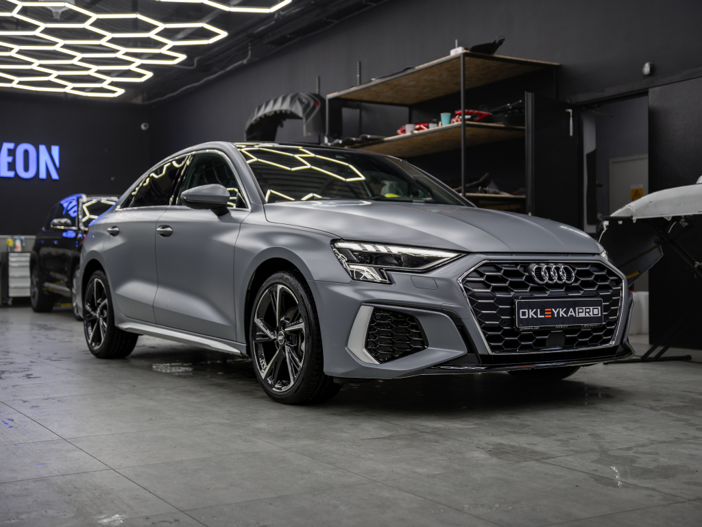 Полиуретановая пленка PPF Colors Satin Nardo Grey Audi RS, сатин «нардо-грей» от IRISTEK. Артикул из раскладки: UC1384. Для оклейки автомобиля.