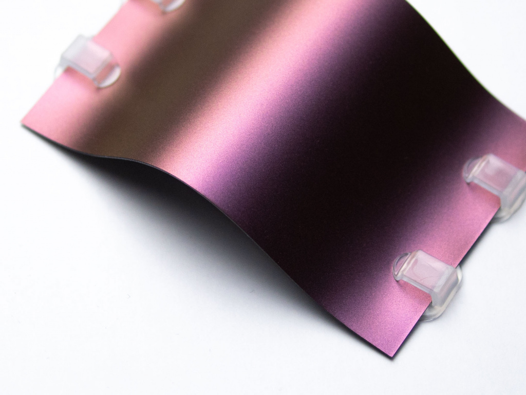 Виниловая пленка с защитным покрытием Rock-TEK, сатин «пурпурно-красный-золотой» от IRISTEK. Артикул из раскладки: RS9042. Для оклейки автомобиля.