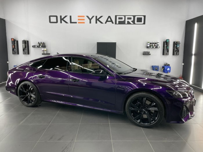 Какие материалы: автовинил SunMax 765, Splendid Midnight Purple/ глянцевый полиуретан Sunmax/ тонировка Luxman/ антихром Oracal 970-070 черный глянец.