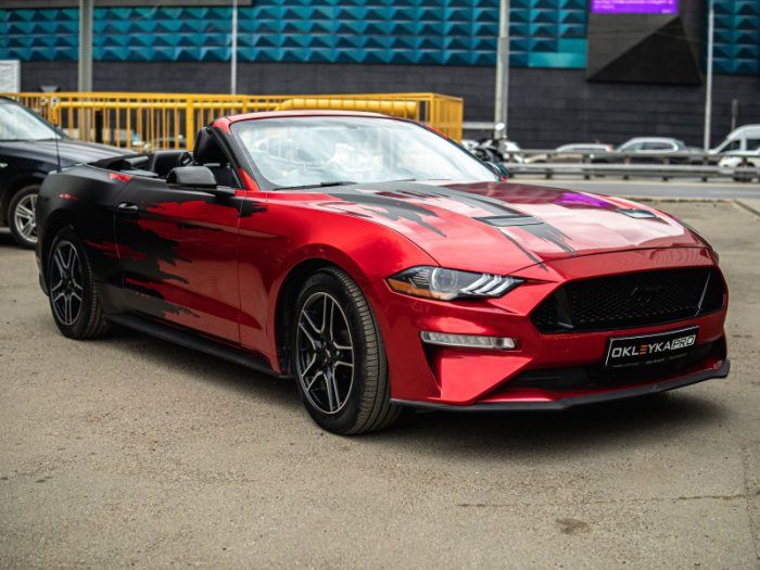 Задача: оклейка автомобиля Ford Mustang кабриолет в дизайн цветным винилом.