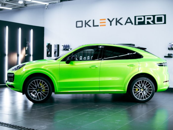 Полная оклейка автомобиля в цветной автовинил яблочно-зеленый коралл (Apple Green).