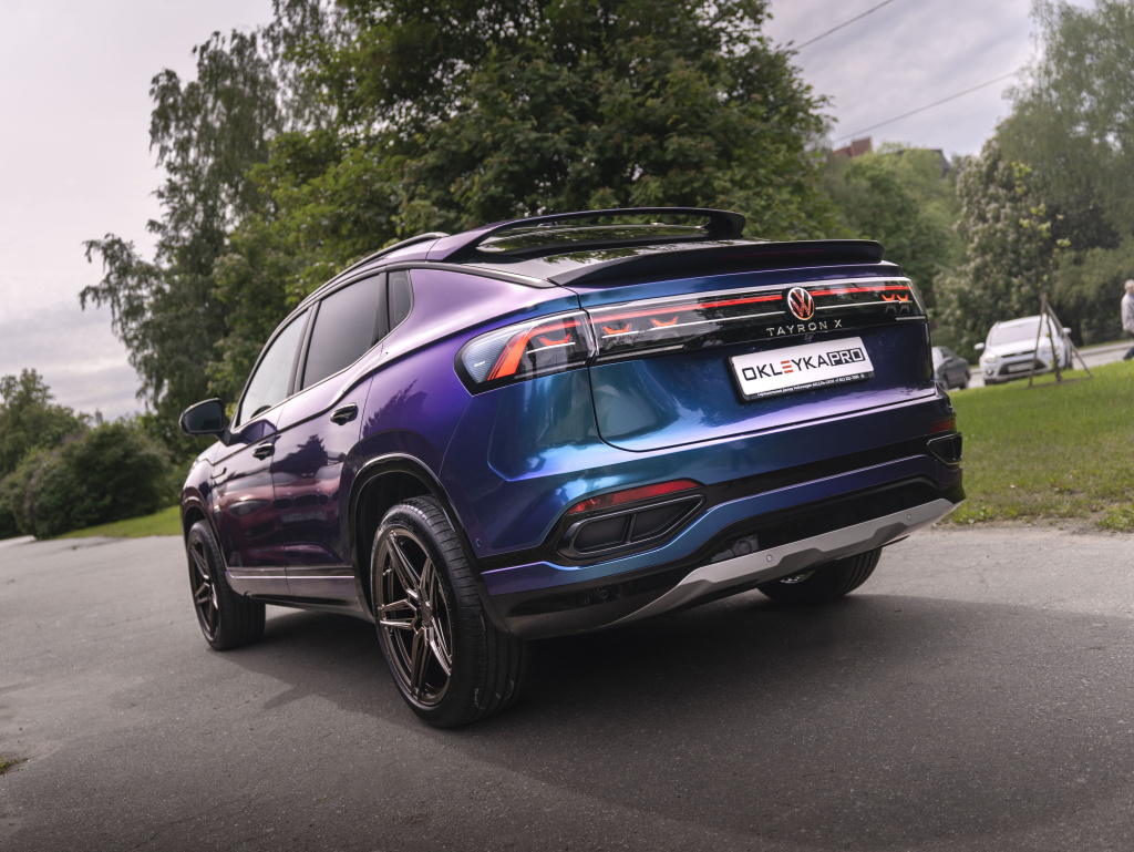 Какие материалы использовались: цветная полиуретановая пленка Iristek UC8067 PPF Colors Chameleon Thunder Blue Purple.