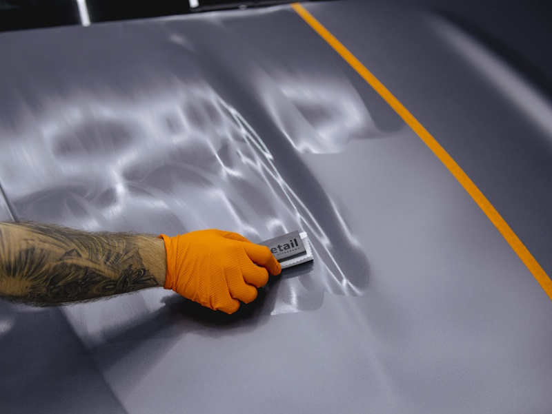 На виниловую или полиуретановую пленку наносим прозрачный кварцевый состав на основе диоксида кремния (SiO2) — по простому керамику. Защищает пленку и в целом кузов авто, придает глубокий цвет, блеск и усиливает гидрофобный эффект.